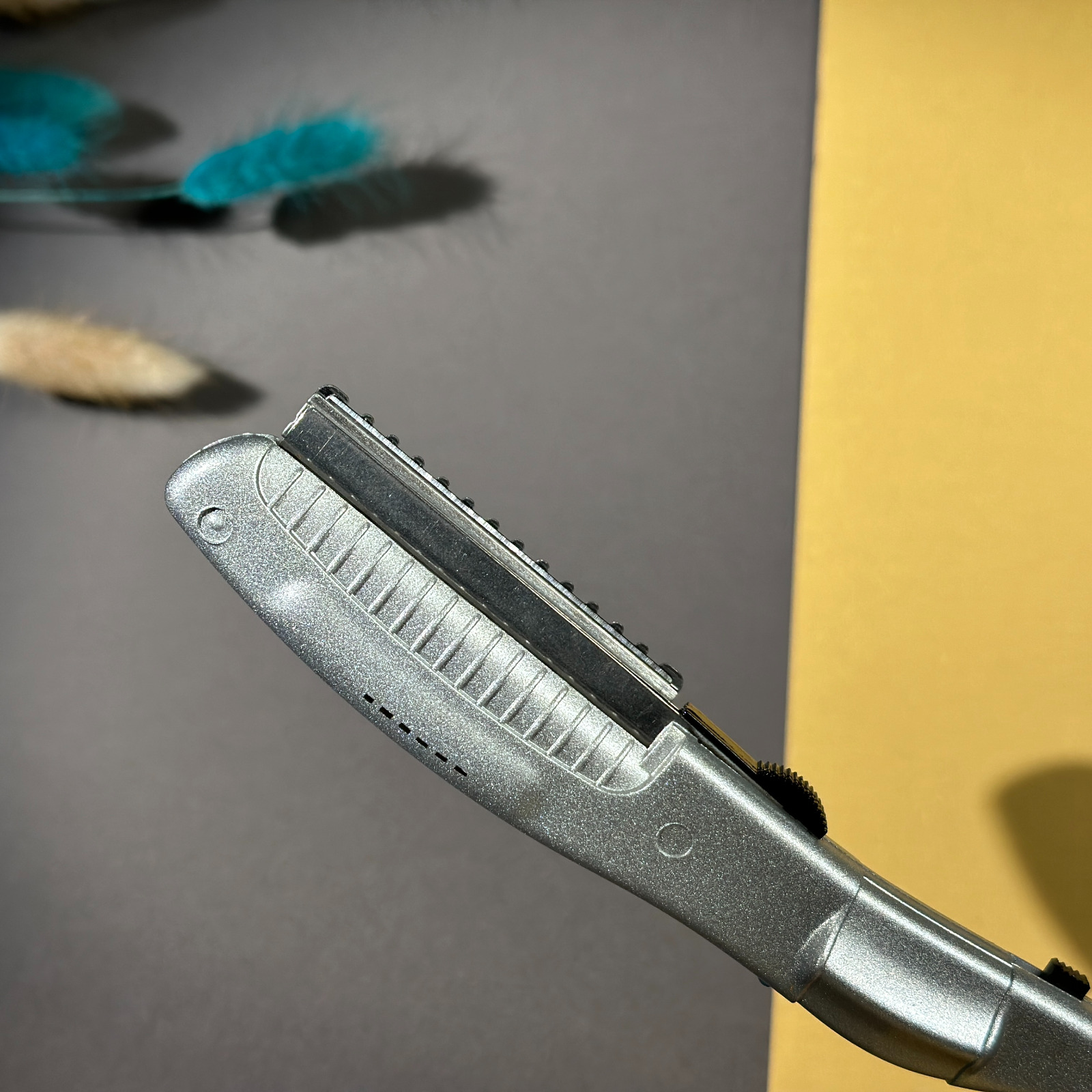 Объемные, блестящие и мягкие волосы. Бритва идеальна для адаптации формы наращенных волос к волосам клиента, дает максимальное избавление от секущихся концов. Эффективный способ филировки и восстановление ломких волос.