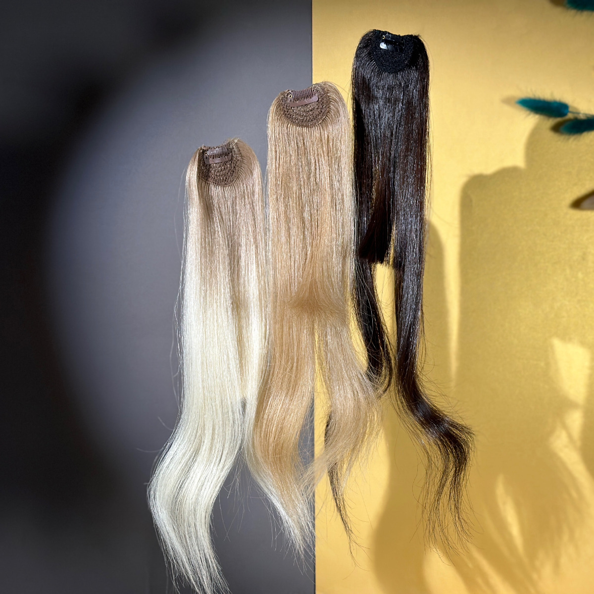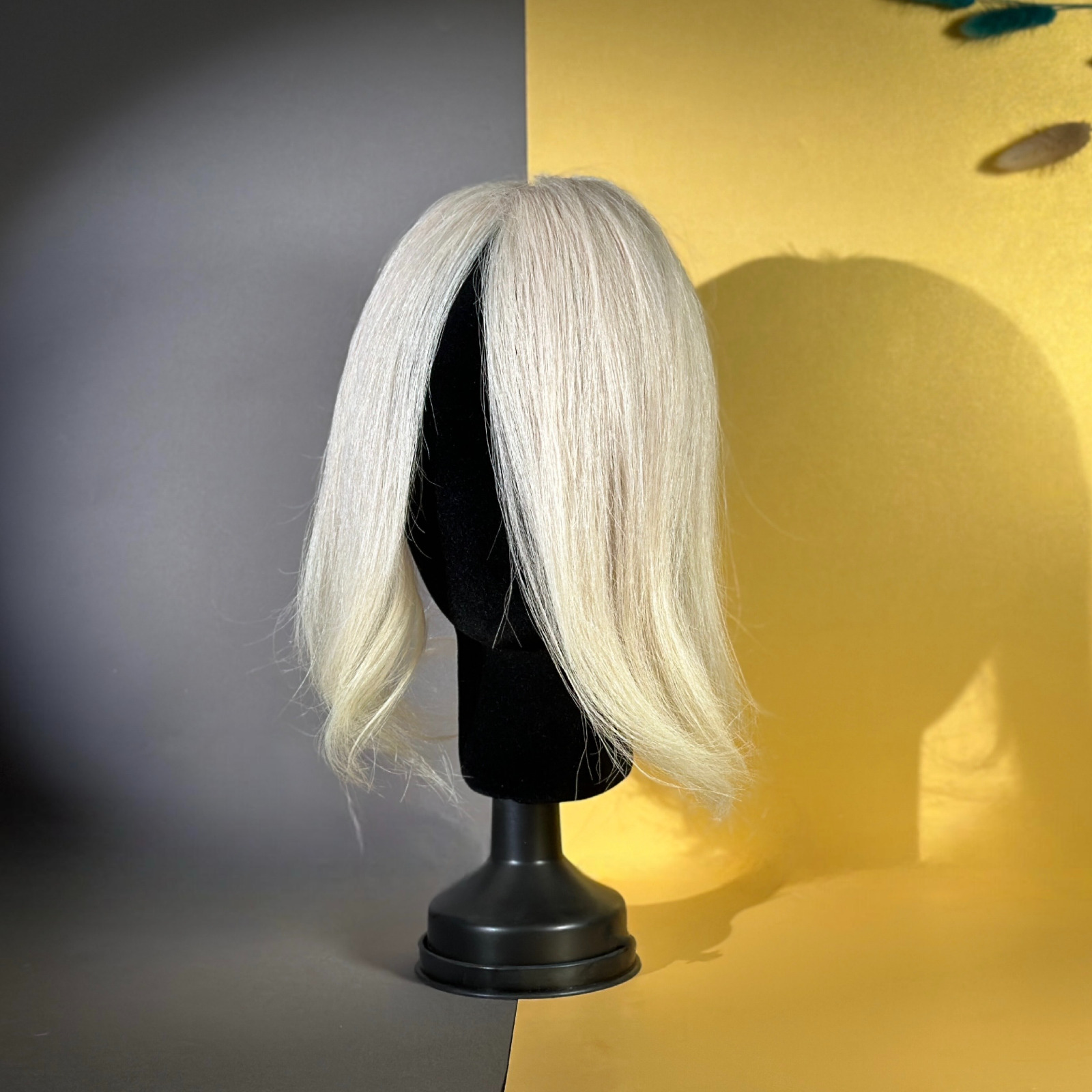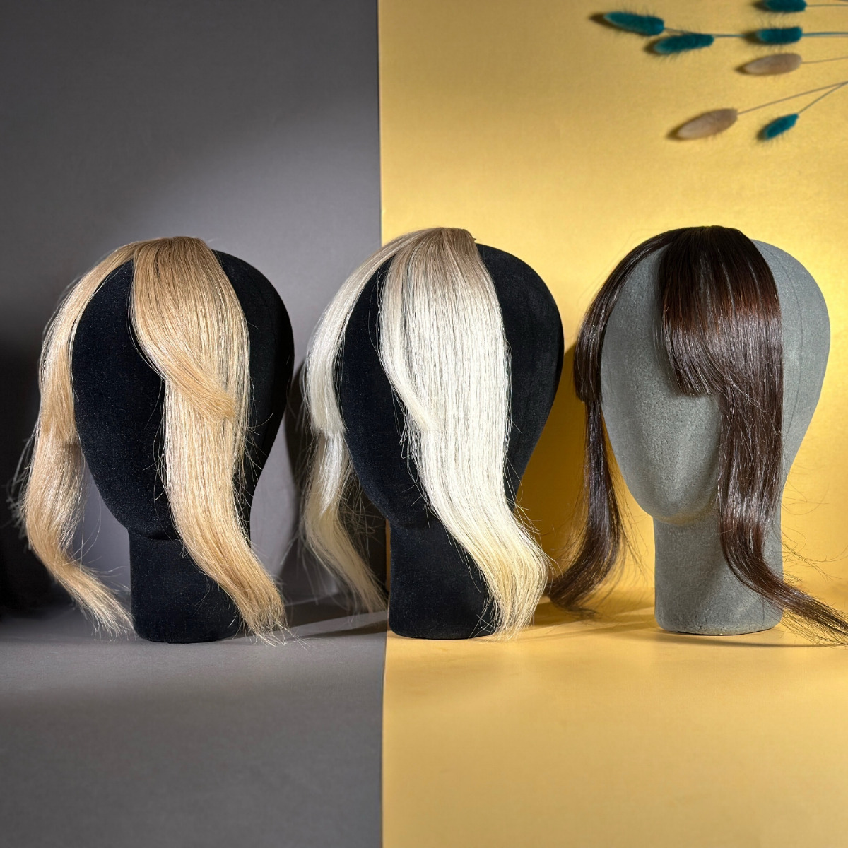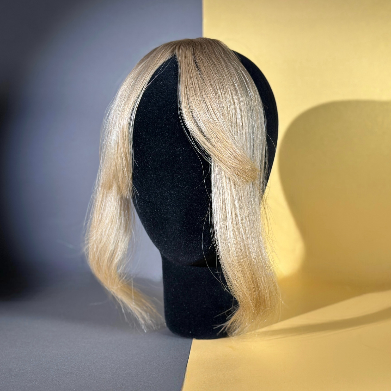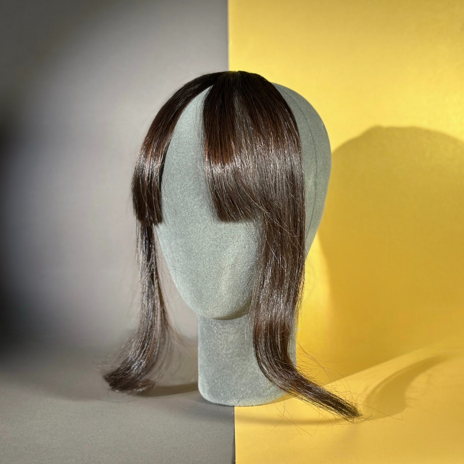 Изделие можно подобрать к собственному цвету волос или к парику. Отлично укладывается с помощью фена или плойки, при необходимости челку можно подрезать до нужной длины.