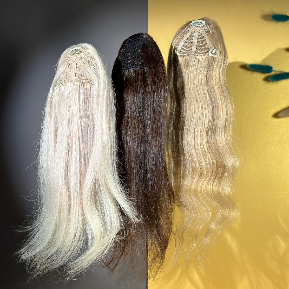 Постижерное изделие для моментальной смены образа. Челка крепится с помощью заколок на внутренней стороне, поэтому вы без труда зафиксируете ее на голове.
