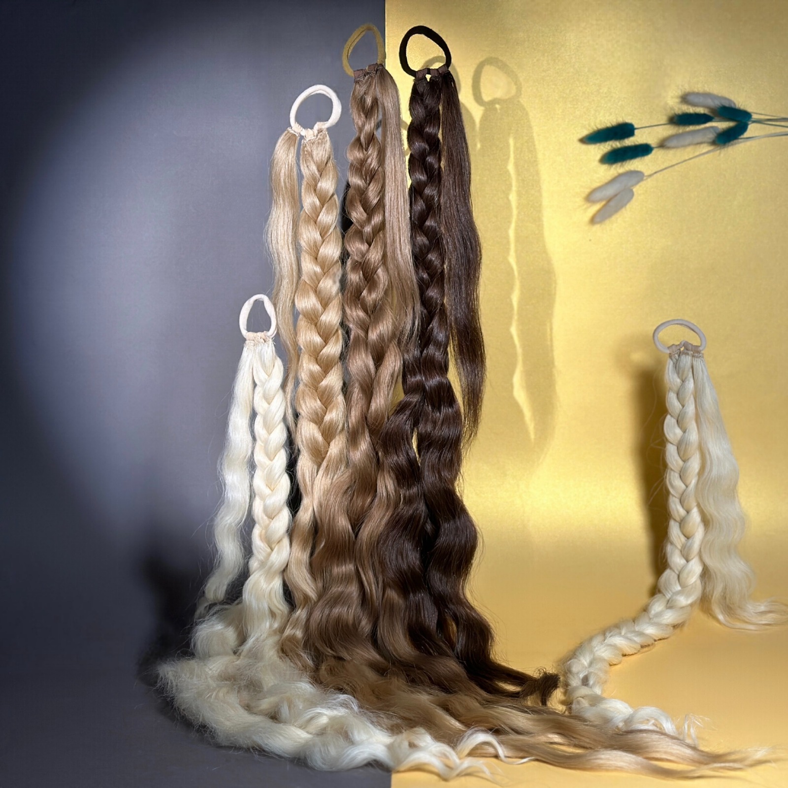 Можно приобрести: шиньон-косу на резинке и шиньон-косу на заколке.