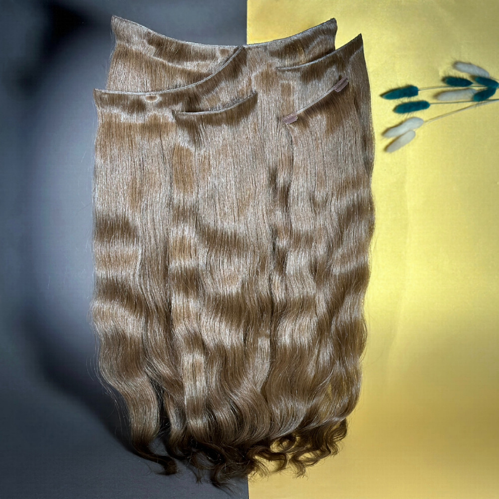 Идеальные русские волосы на заколках. Тонкая, незаметная линия крепления, можно с легкостью добавить длины/густоты своим волосам. Подходит для самостоятельного использования.